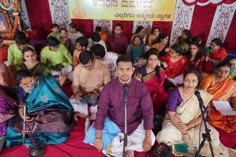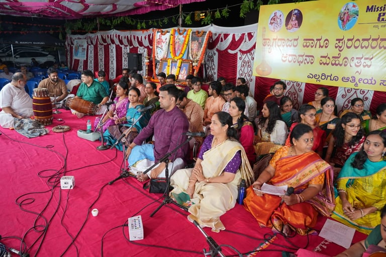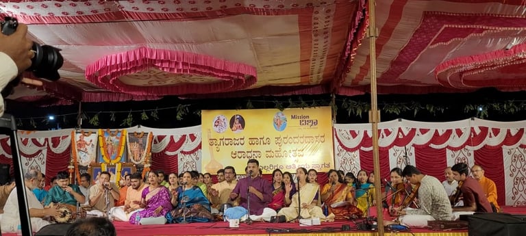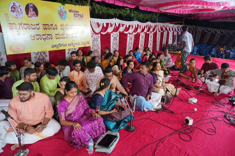 A Musical feast giving tribute to the great Saint Thyagaraja and Purandhara Daasa through Classical Music of Individual and Group performances giving platform for Young upcoming and experienced Artists.